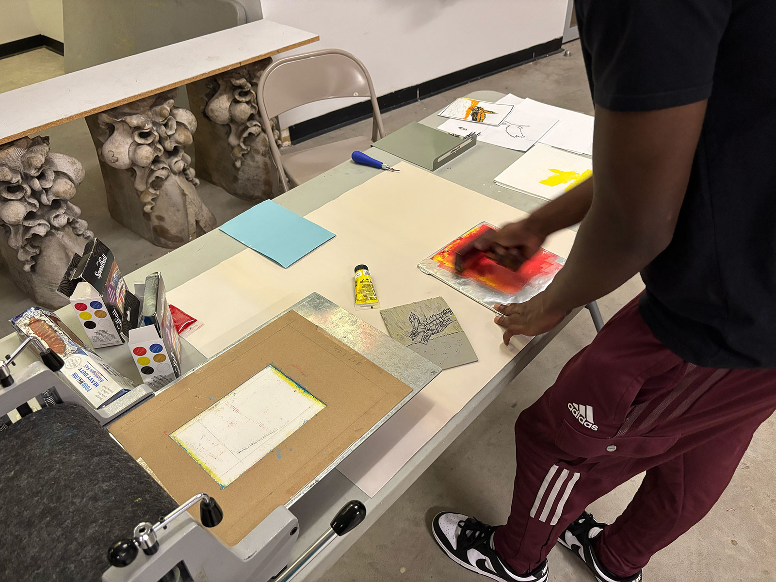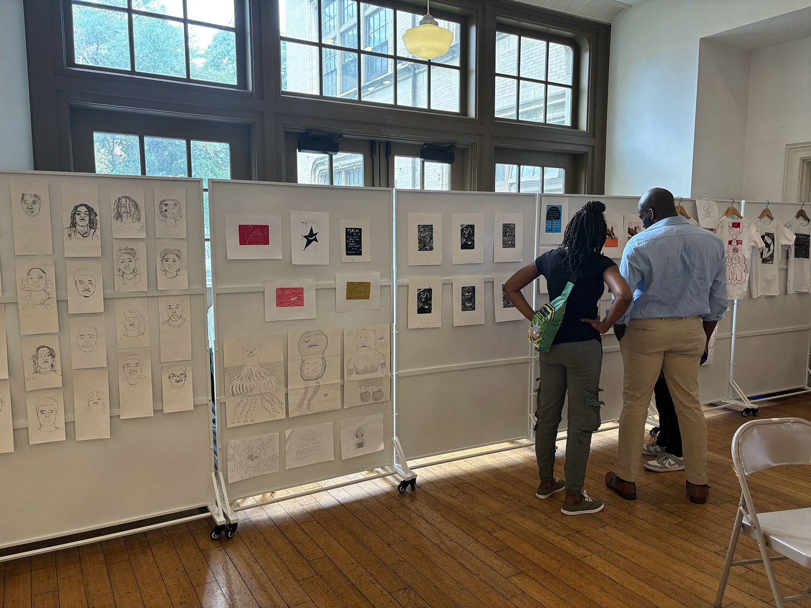 During the program, participants learn printmaking techniques like monoprint, silkscreen, and Risography. Field trips to NYC institutions like MoMA, New Museum, Interference Archive, and the Met illustrate how other artists have encountered and digested political engagement, and collaborations with other programs like Swiss Institute Teens and Prep for Prep have created opportunities for teens to teach one another new skills.