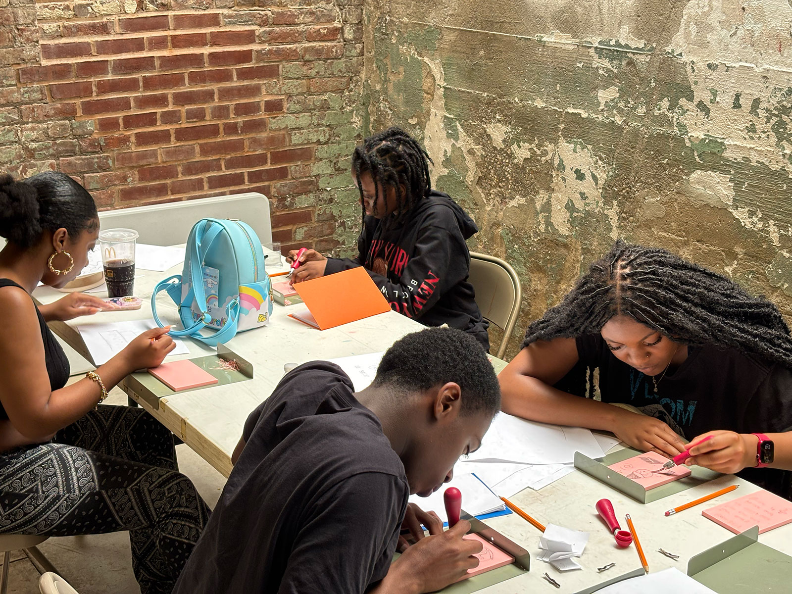 Each year, up to 12 teenagers from New York City public schools can participate in a Summer Youth Intensive, and an additional 12 in a Winter Youth Intensive, if offered. Over 144 hours of class time, students learn new art techniques, and how art has intersected with social justice movements throughout history. With a special focus on how students' own stories and family history are interwoven with contemporary American society and discourse, a dedicated artist-educator facilitates creative projects that engage with ideas of cultural change.