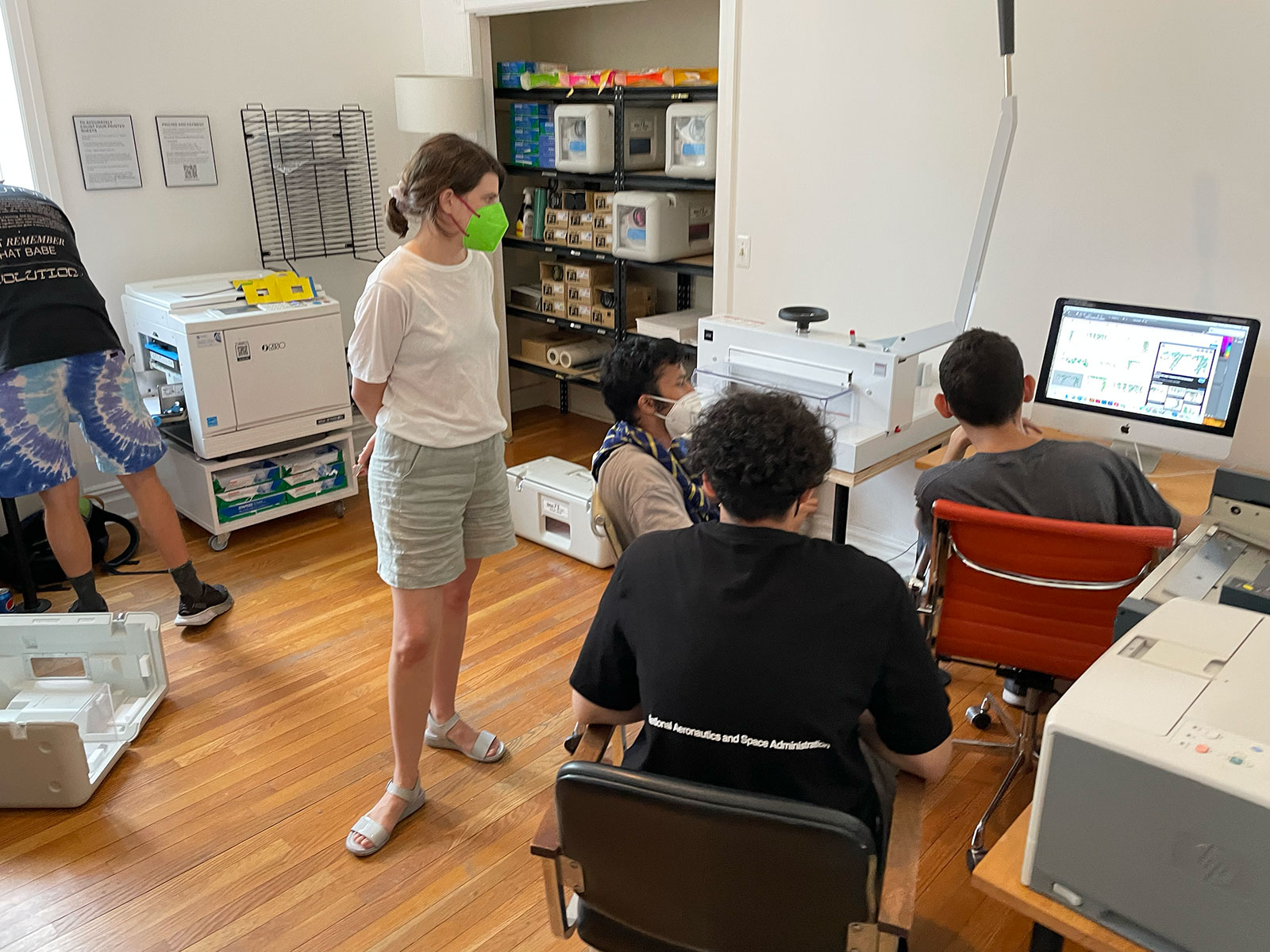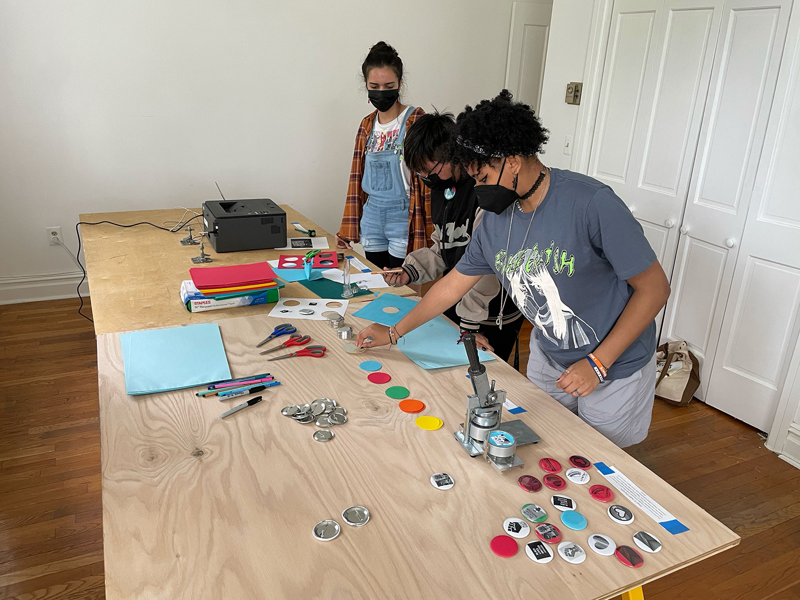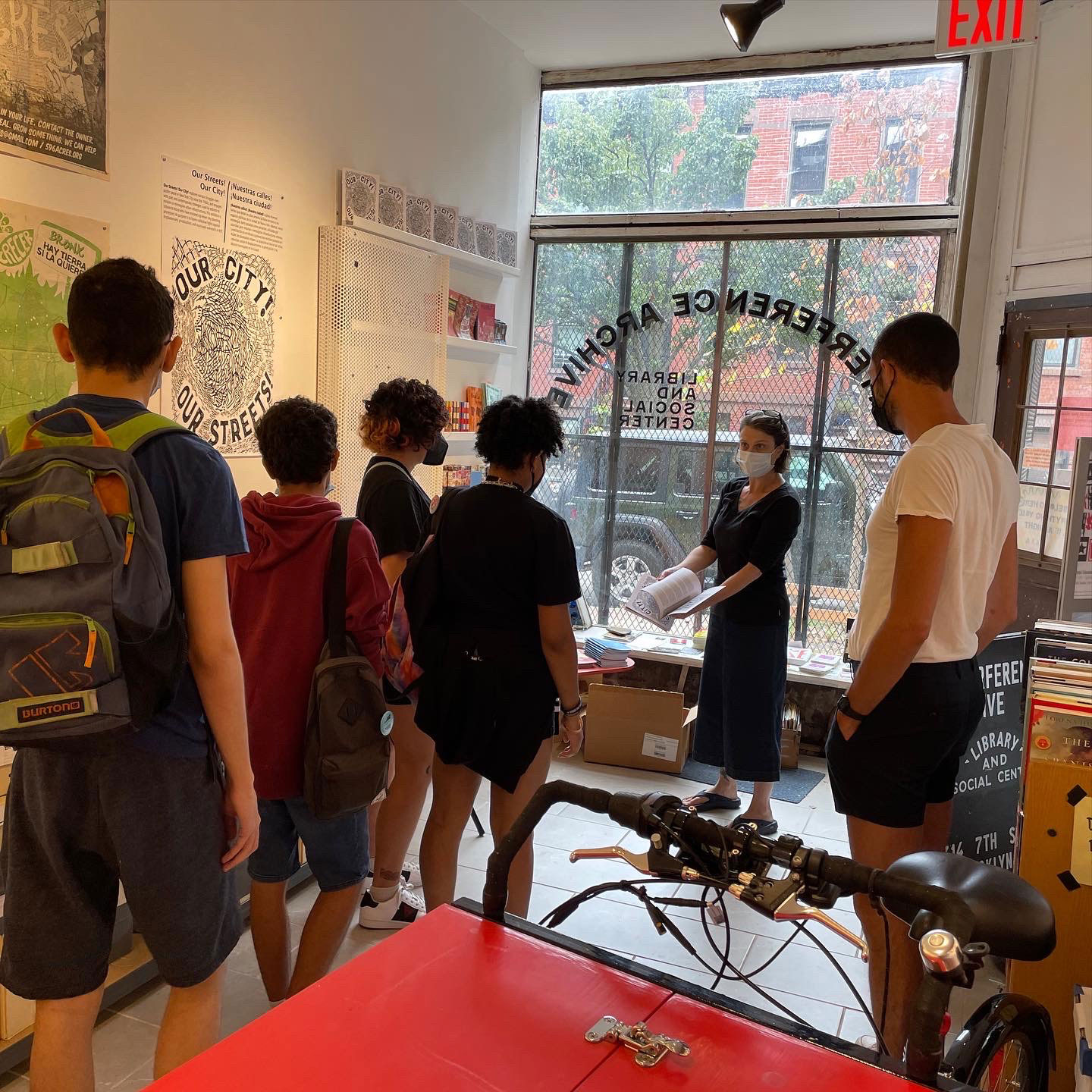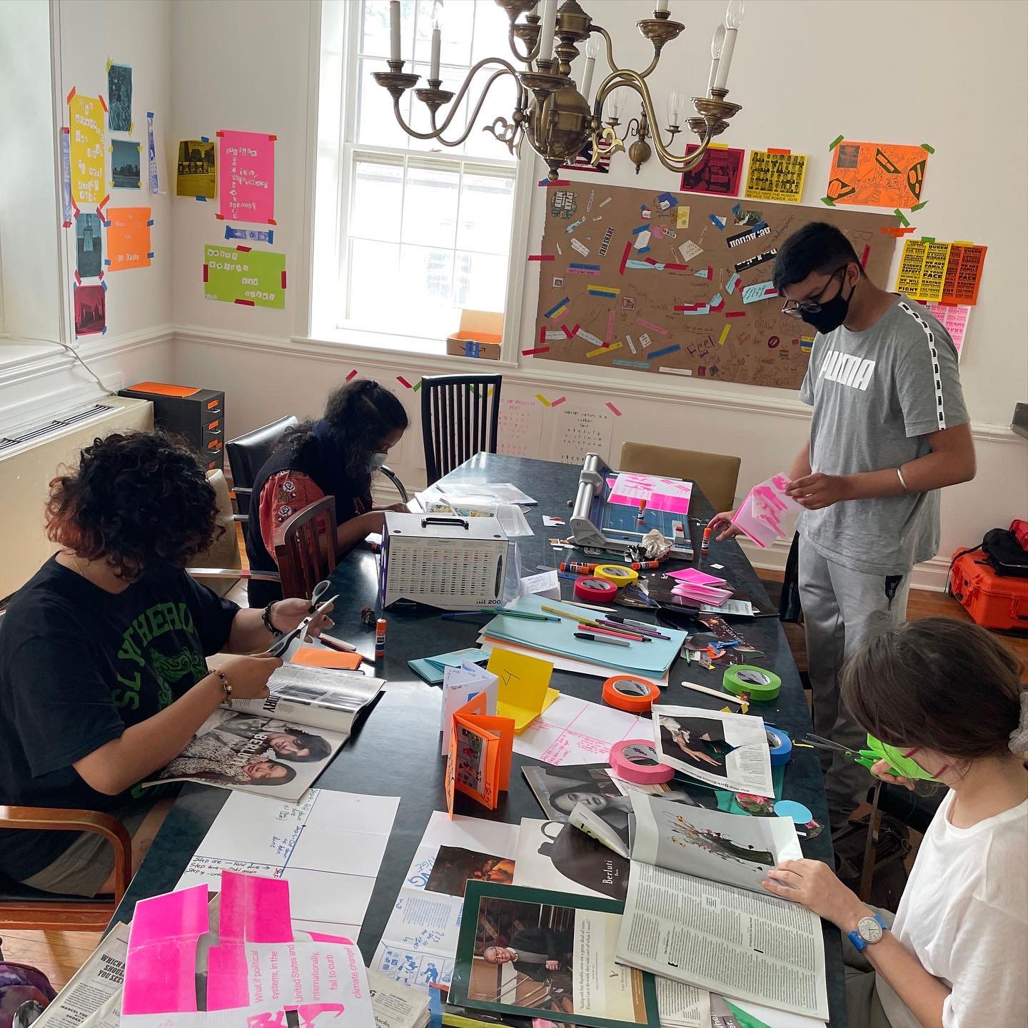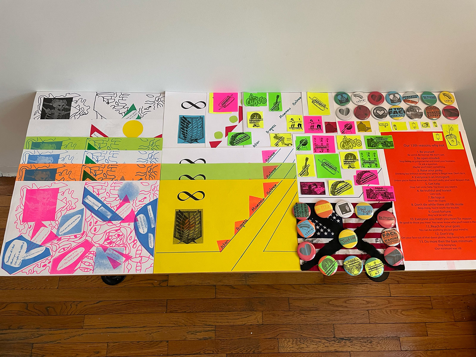 During the program, participants learn printmaking techniques like monoprint, silkscreen, and Risography. Field trips to NYC institutions like MoMA, New Museum, Interference Archive, and the Met illustrate how other artists have encountered and digested political engagement, and collaborations with other programs like Swiss Institute Teens and Prep for Prep have created opportunities for teens to teach one another new skills.