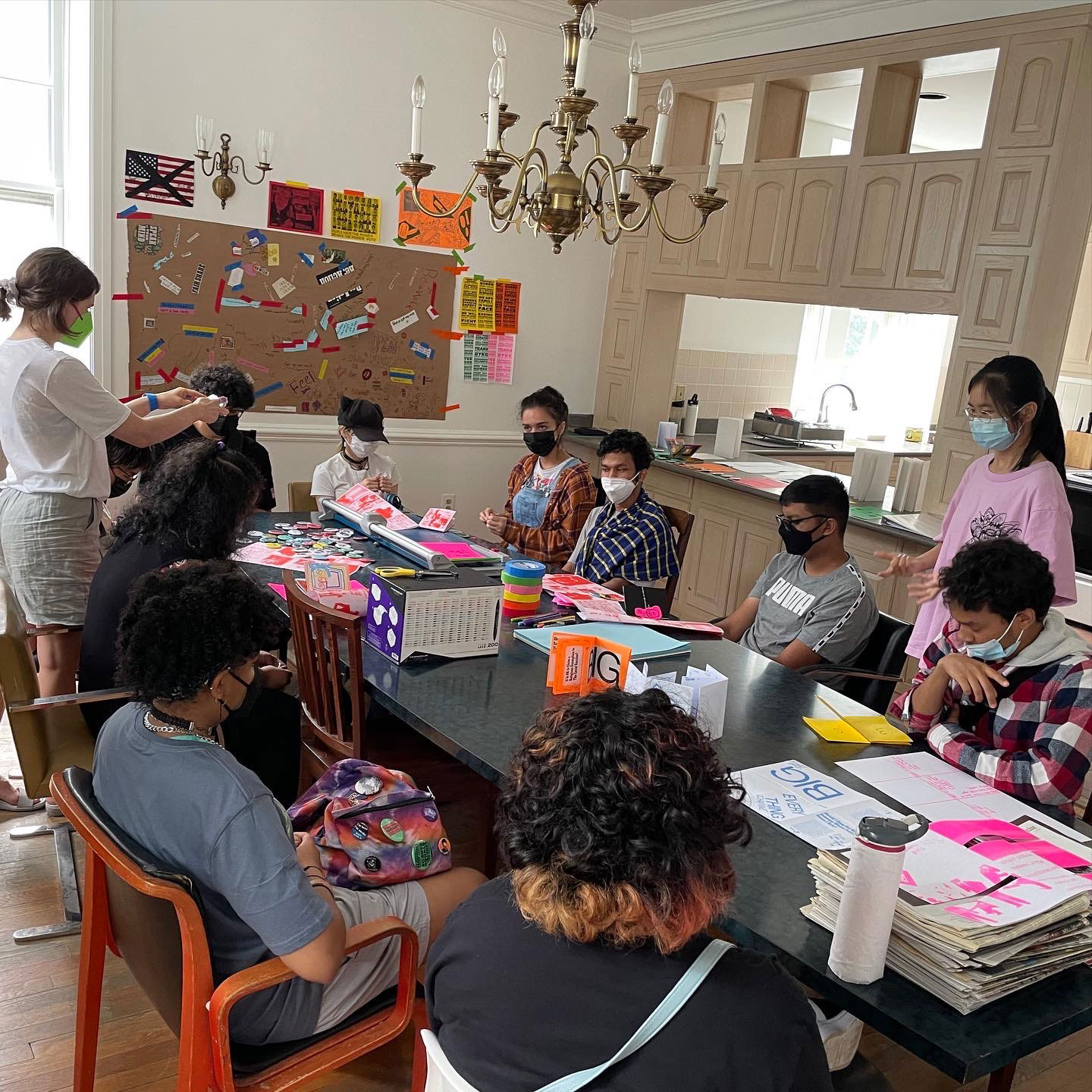 Each year, up to 12 teenagers from New York City public schools can participate in a Summer Youth Intensive, and an additional 12 in a Winter Youth Intensive, if offered. Over 144 hours of class time, students learn new art techniques, and how art has intersected with social justice movements throughout history. With a special focus on how students' own stories and family history are interwoven with contemporary American society and discourse, a dedicated artist-educator facilitates creative projects that engage with ideas of cultural change.