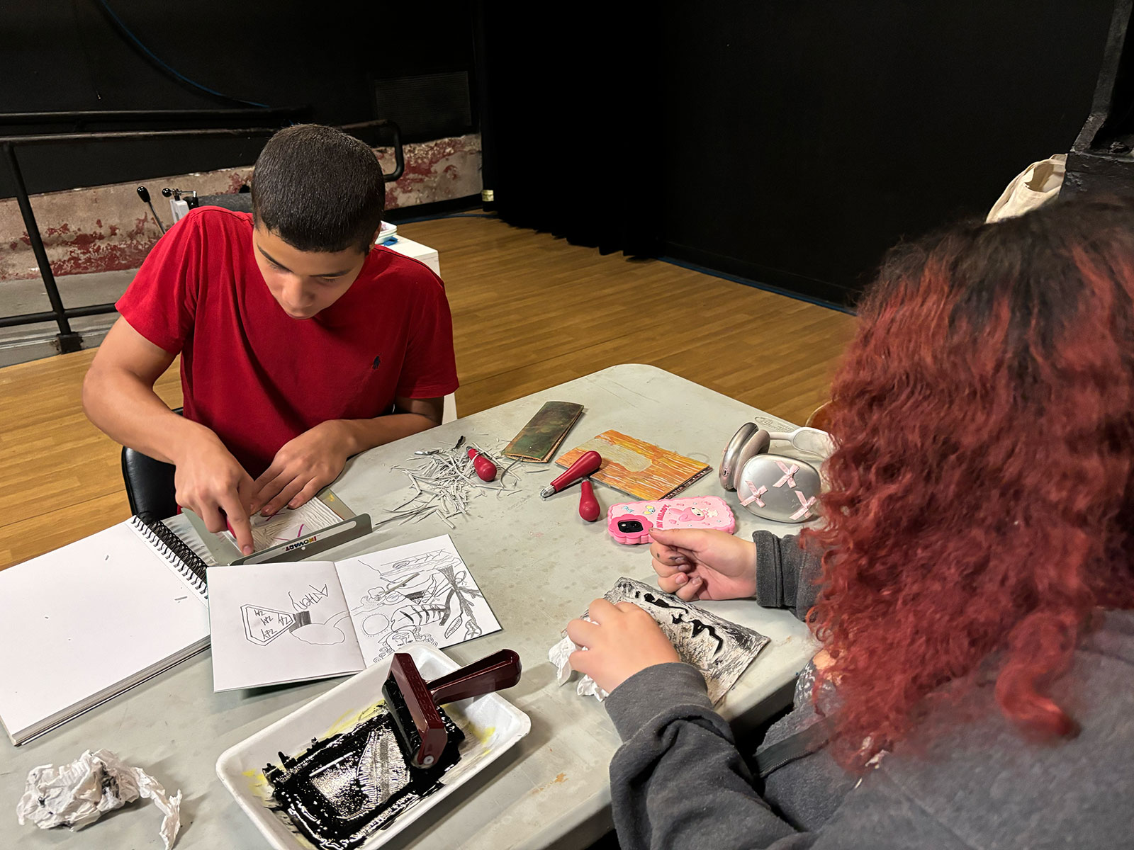 During the program, participants learn printmaking techniques like monoprint, silkscreen, and Risography. Field trips to NYC institutions like MoMA, New Museum, Interference Archive, and the Met illustrate how other artists have encountered and digested political engagement, and collaborations with other programs like Swiss Institute Teens and Prep for Prep have created opportunities for teens to teach one another new skills.