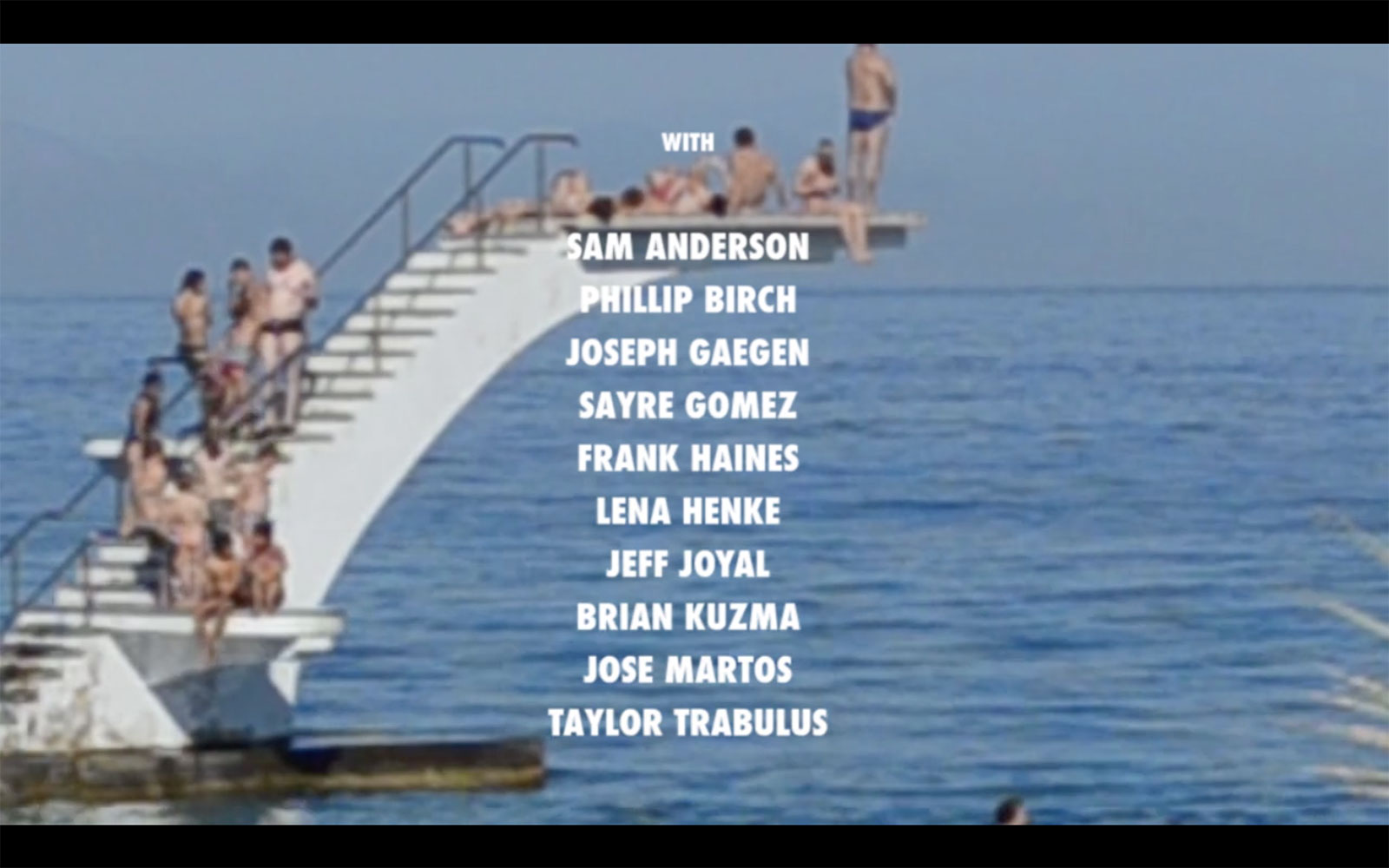 Starring Jessi Reaves, JPW3, Sam Anderson, Phillip Birch, Joseph Geagan, Sayre Gomez, Frank Haines, Lena Henke, Jeff Joyal, Brian Kuzma, Jose Martos, and Taylor Trabulus. Original score by Harry Bornstein, GOBBY, Max McFerren, and NA NGUZU.