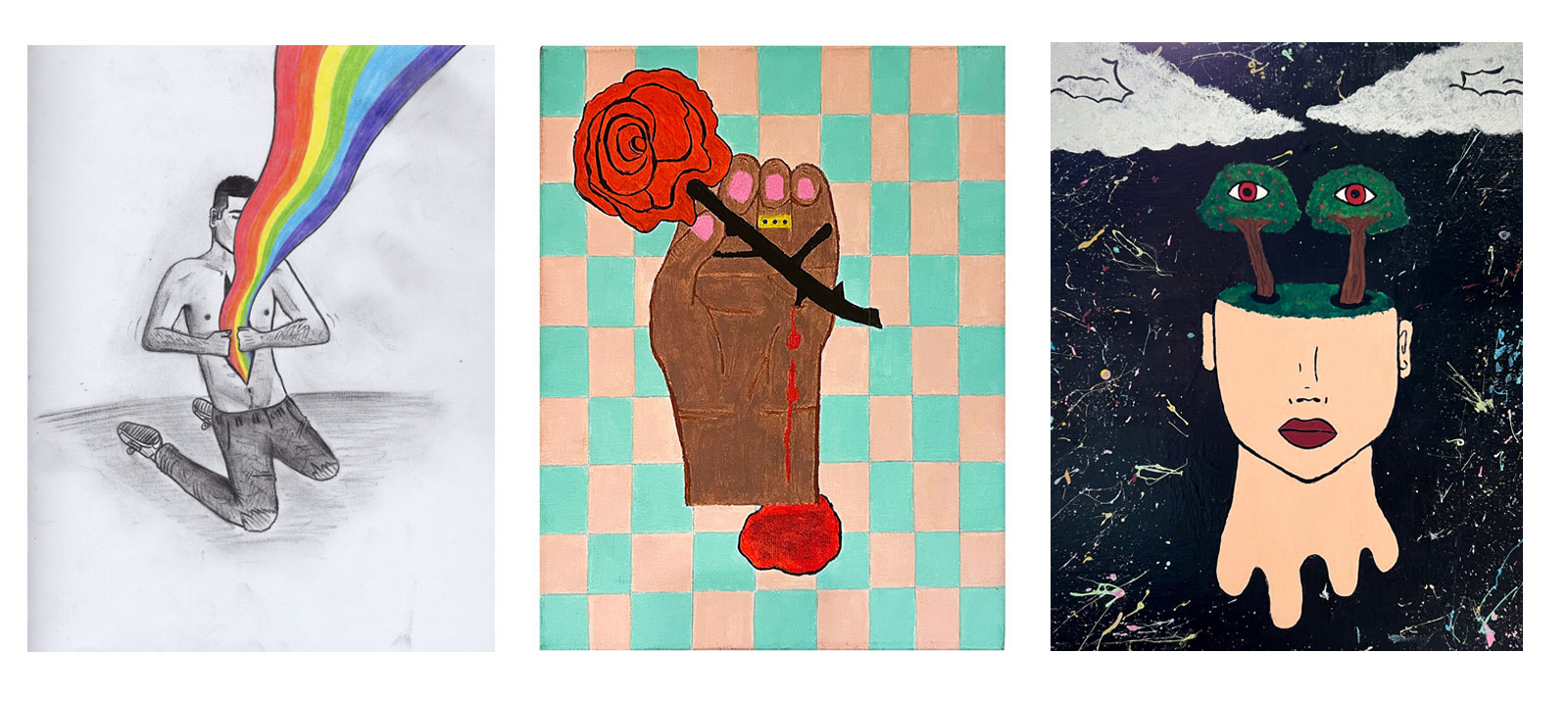 The Columbia Collective emerged in 2019 from arts programming created by non-incarcerated artist Maggie Hazen within the New York Department of Corrections’ Columbia Secure Center for Girls. The Collective is comprised of three female and trans multimedia artists: Jay, Marshmallow, and Juste-A. Each has assumed a pen name to subvert a legal requirement of confidentiality, and uses a dynamic artistic practice to navigate the circumstances of their incarceration.