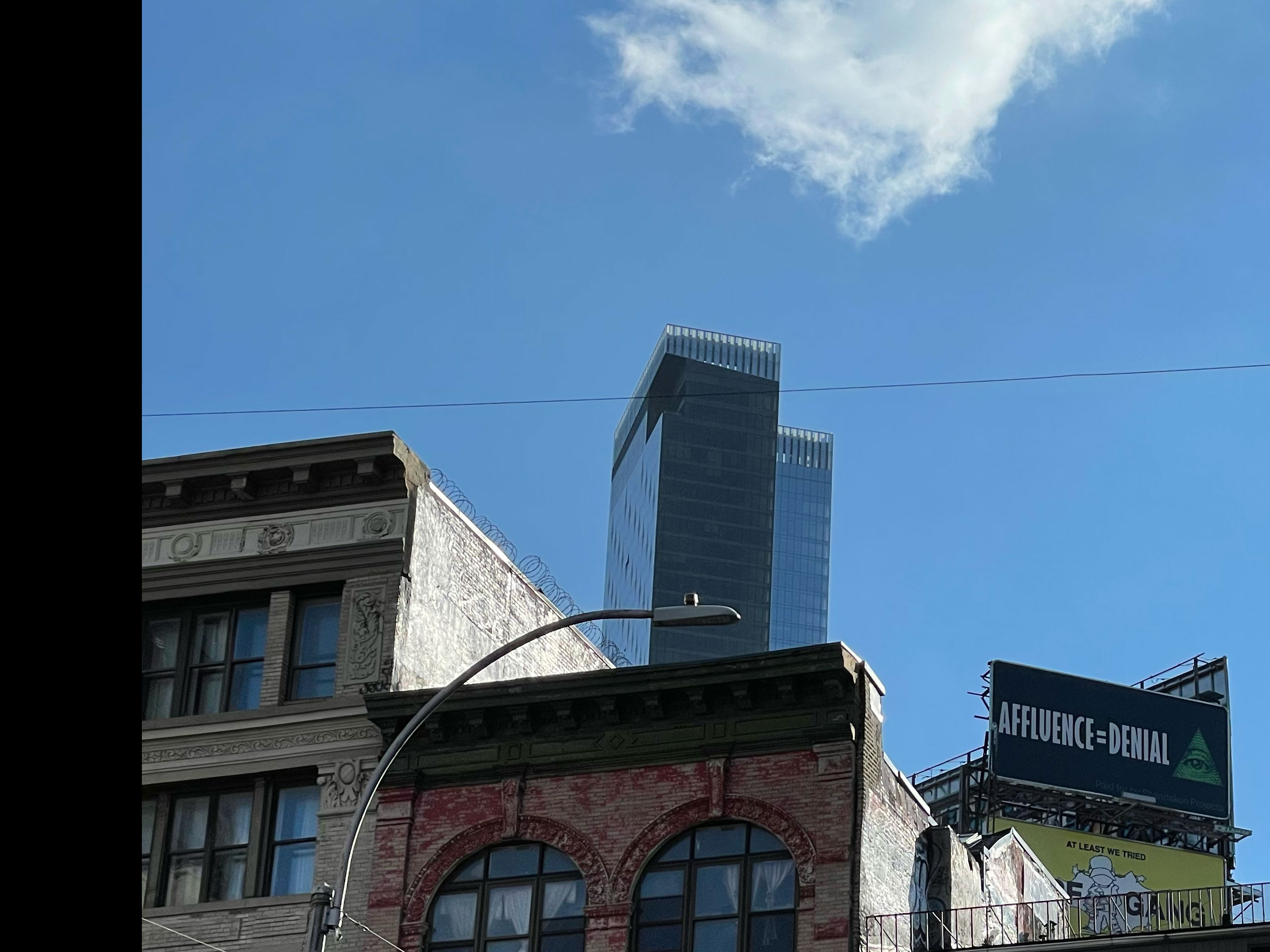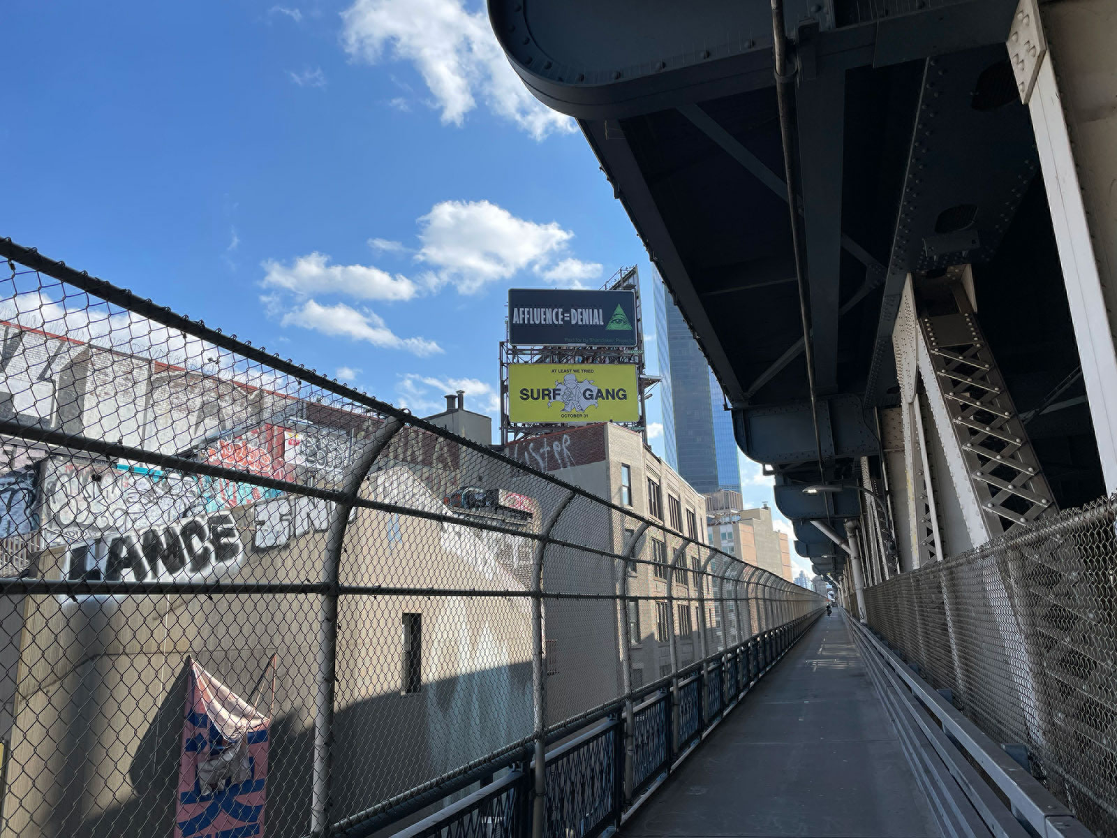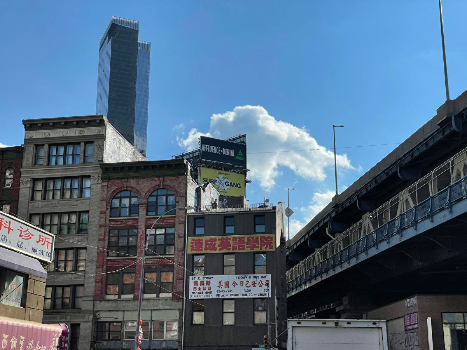 Shandaken Projects is pleased to announce the exhibition of Affluence=Denial by Joe Mama-Nitzberg, at the corner of Eldridge and East Broadway, Manhattan. This billboard can be seen from the street looking south from Eldridge or Forsyth. The closest vantage is the bike lane of the Manhattan Bridge, and it can also easily be viewed from the first fifty yards of the bridge's Brooklyn-bound roadway. It will remain on view through December 8.