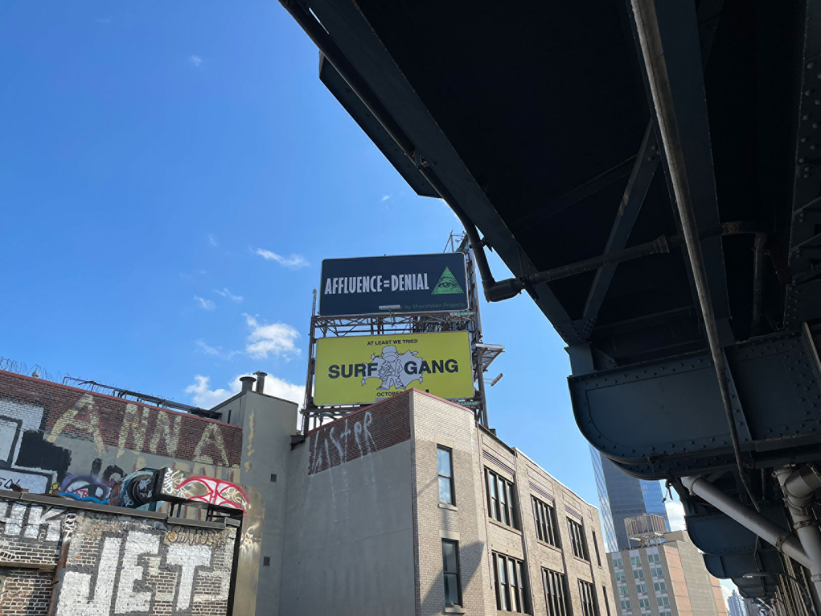 The exhibition of Affluence = Denial is part of Shandaken: 14x48, an annual open call request for proposals by emerging and mid-career artists to exhibit artwork on billboards throughout New York City. The program was inaugurated in 2021 with 1776 by Josh Kline, and continued in 2022 with works by Jonathan Lyndon Chase and Acacia Marable. To be notified when the request for proposals for the 2022-23 season opens, please sign up for Shandaken's mailing list.